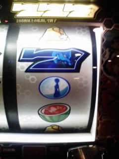と思ってた所で再び上段青7からスイカ揃いです!
